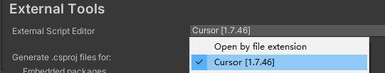 2025年4月15日,微软开始对 Cursor 等 Code Forks 进行了进一步的插件封禁,不能下载到 VSCode 市场中的官方插件,比如 C#、C# Dev Kit、C++等,因此 Cursor 的配置方式与 VSCode 有所不同。 原贴地址:https://www.reddit.com/r/Unity3D/comments/1kq9psh/cursor_unity_integration_short_guide/